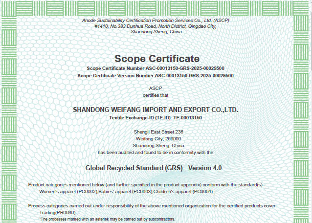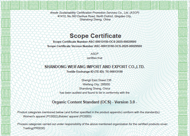 公司自營(yíng)和代理服裝、食品、五金、化工、機(jī)電等各類商品及技術(shù)的進(jìn)出口業(yè)務(wù),公司有專門(mén)的生產(chǎn)、加工基地,并通過(guò)了Oeko - Tex Standard 100、GRS、OCS、RCS、USCTP等多項(xiàng)認(rèn)證,可以按客戶要求設(shè)計(jì)生產(chǎn),同時(shí)承辦中外合資經(jīng)營(yíng)、合作生產(chǎn)、開(kāi)展“三來(lái)一補(bǔ)”以及技術(shù)輸出、易貨、邊境貿(mào)易等業(yè)務(wù)。公司產(chǎn)品出口到日本、法國(guó)、俄羅斯等50多個(gè)國(guó)家或地區(qū)。